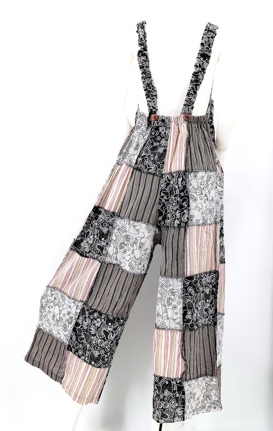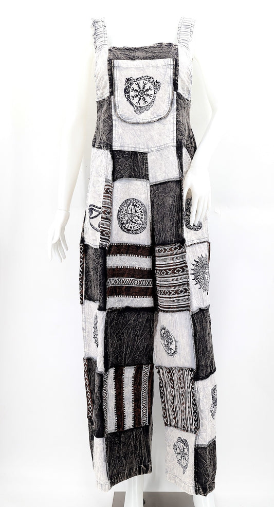 Patchwork Overalls Black/White Celestial